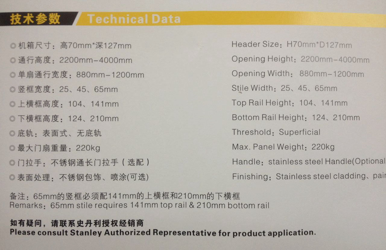 深圳史丹利平衡門技術(shù)參數(shù)