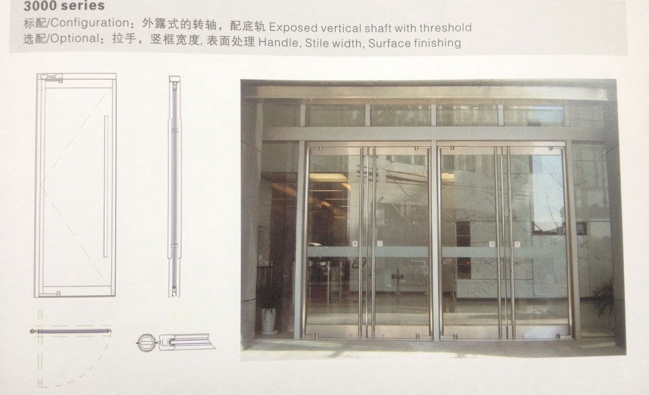 兩種門型可選,轉(zhuǎn)軸隱藏式的2000系列和轉(zhuǎn)軸外露式的3000系列.