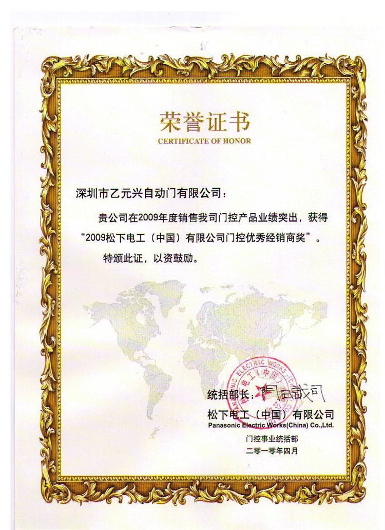 • 松下自動(dòng)門(mén)經(jīng)銷(xiāo)商證書(shū)